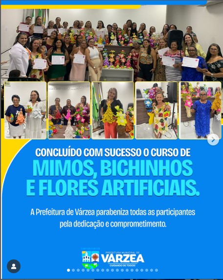 As Varzeanas concluíram o curso de mimos, bichinhos e Flores Artificiais, promovido pela Prefeitura de Várzea em parceria com a Assistência Social e o CRAS.