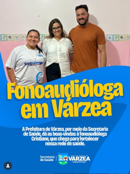 A Prefeitura de Várzea, por meio da Secretaria de Saúde, tem a alegria de receber a fonoaudióloga Cristiane em nossa equipe. Que seu trabalho transforme vidas e fortaleça ainda mais os cuidados com a saúde da nossa população!