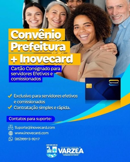 A Prefeitura Municipal, em parceria com a inovecard, traz para você uma nova facilidade: o cartão consignado exclusivo para servidores efetivos e comissionados.