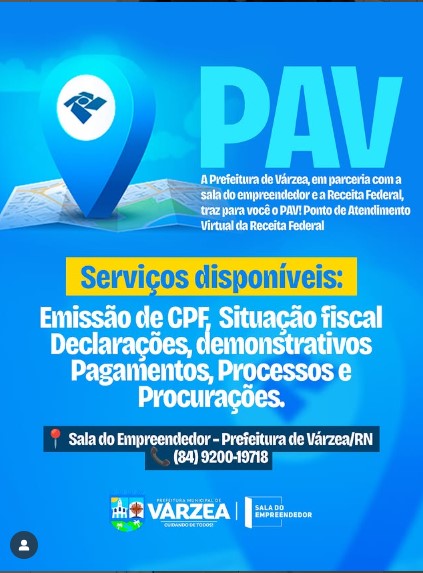 A Prefeitura de Várzea, em parceria com a Sala do Empreendedor, trouxe para você o PAV – Ponto de Atendimento Virtual da Receita Federal.